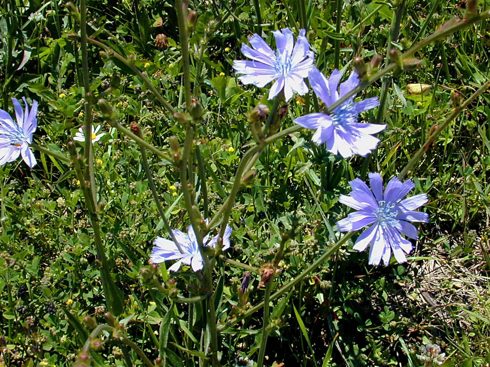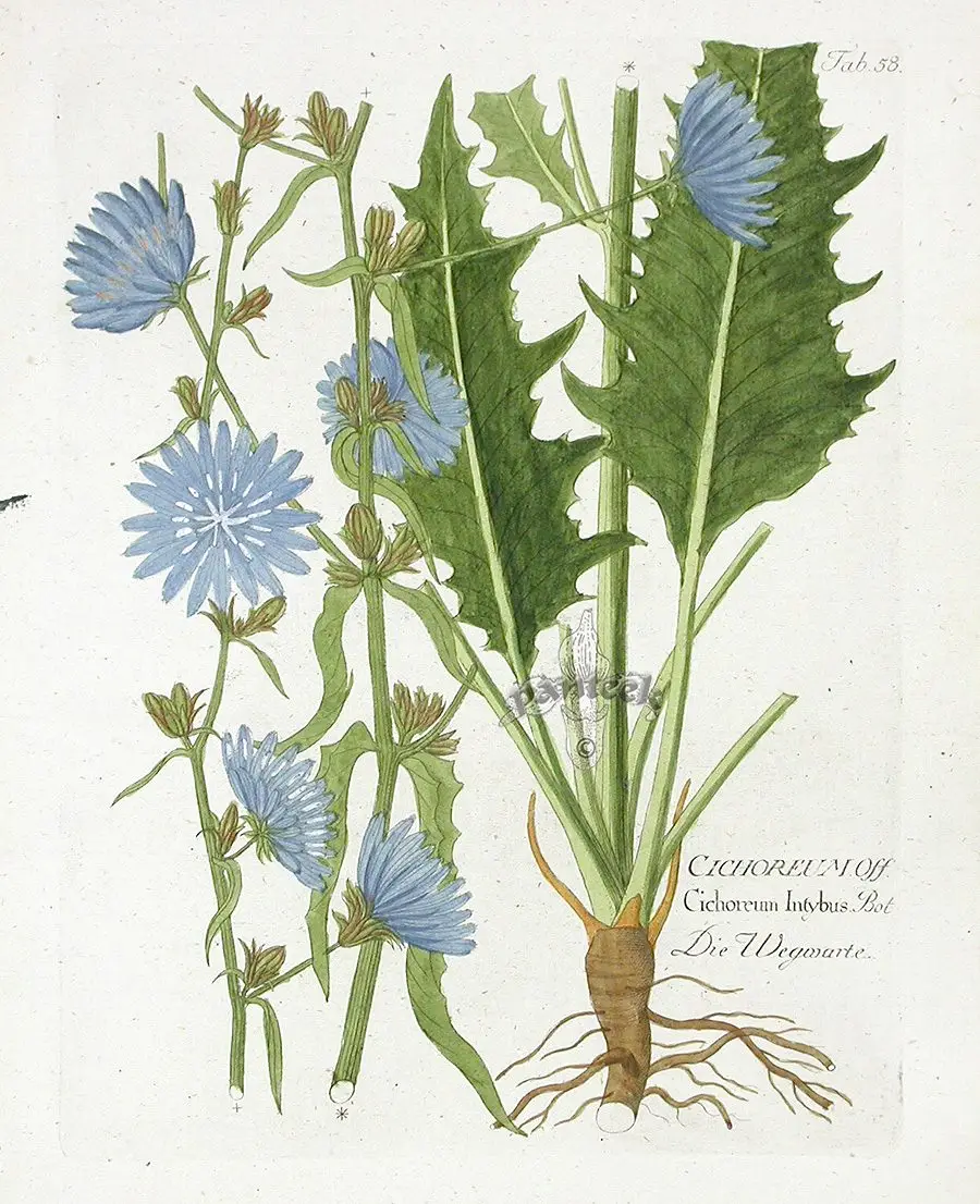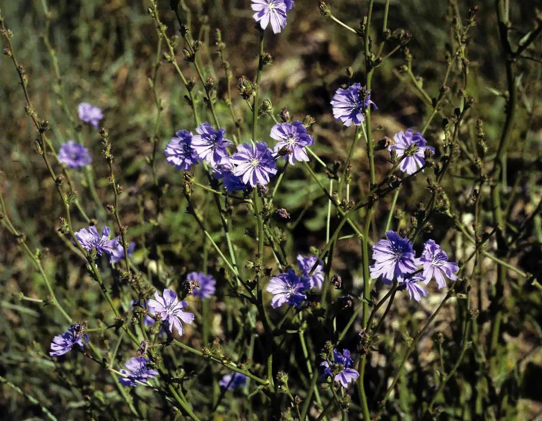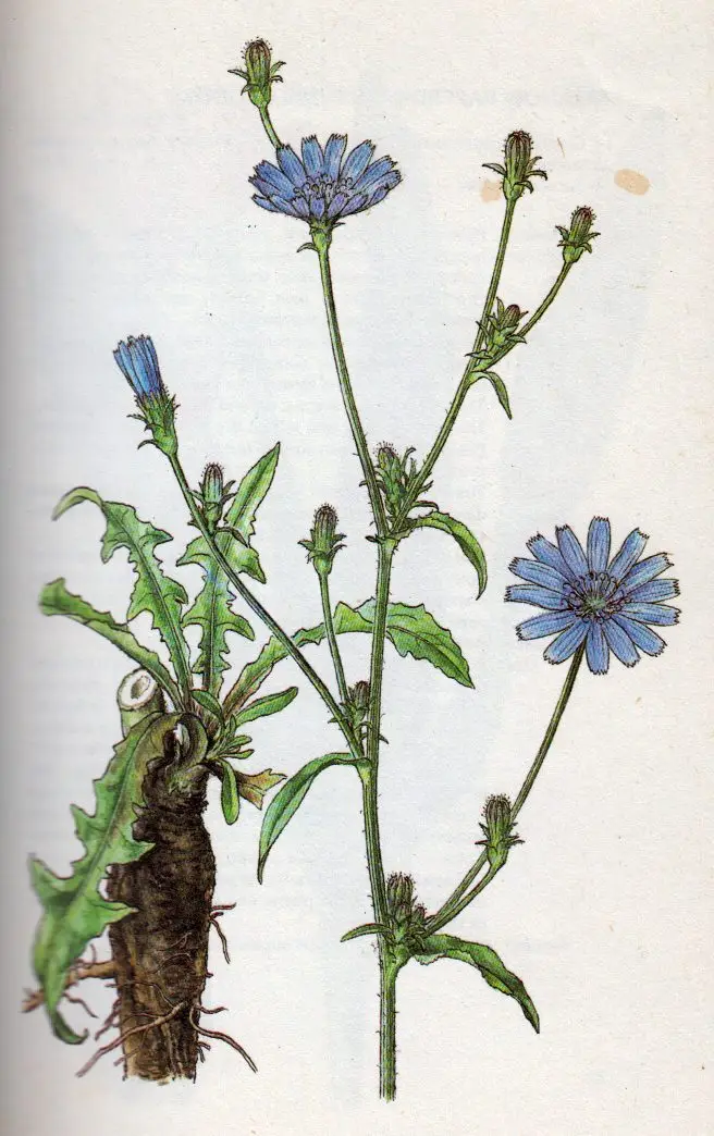 Cichorium intybu. Chicory is one of the toughest plants you’ll ever have in your garden. It laughs at hot weather when everything else is falling over. It can grow in dry lowlands, as well as mountains. The leaves and flowers are wonderfully edible. The roots are used to make a coffee-type drink. Chicory has been credited with many medicinal qualities in support of digestion and the liver, mainly due its bitter principles.