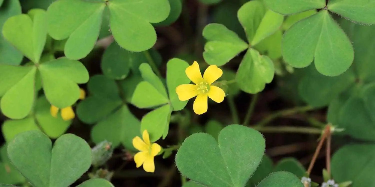 Wood sorrel looks similar to clover and tends to get misidentified as clover. It has a sour taste which is reminiscent of Sorrel or Dock, but it is only a distant relation.