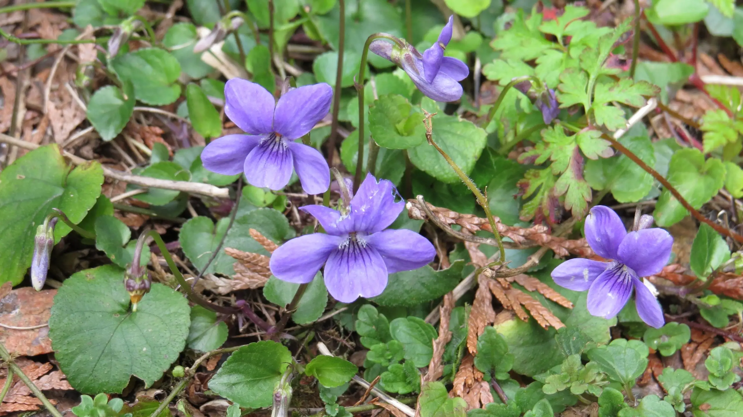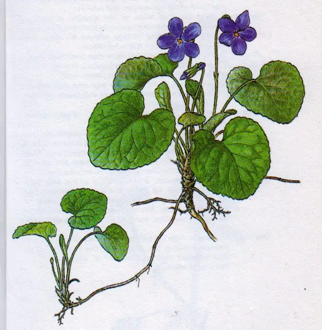 Viola odorata. The leaves and flowers are edible. The flours, leaves and roots are widely used as a medicine. Violets spread vigorously, and are tough.