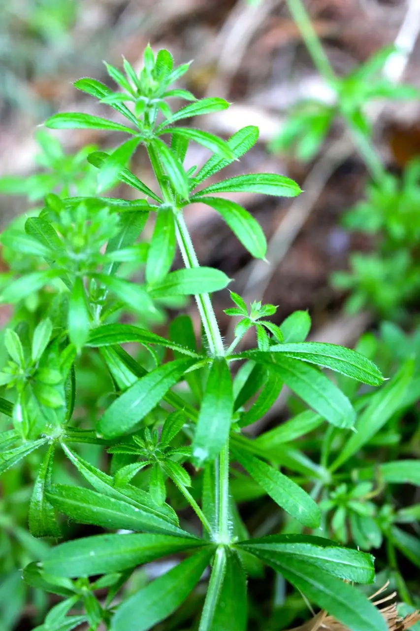 Galium aparine. A prolific weed with a long history of medicinal uses. It can be steamed, or the tips can be eaten raw, but the texture is a ‘thing’; a bit like eating velcro.