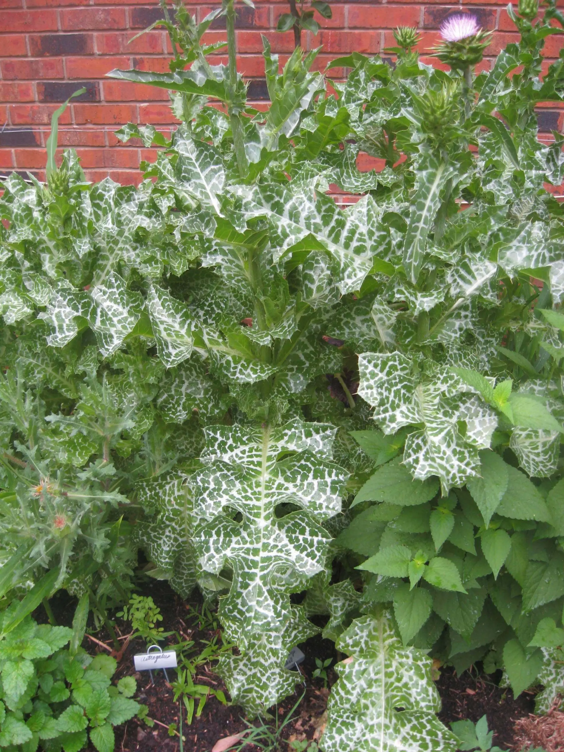 Milk Thistle (Silybum marianum) is well known as a medicinal planet, because extracts from its seeds are known to support the liver. Its leaves make excellent eating if you cut the spines off; when the plant is young and vigorous, the leaves are thick and fleshy, and steam up well.